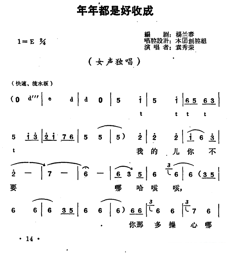 年年都是好收成 《朝阳沟》栓保娘唱段:年年都是好收成简谱-豫剧曲谱 曲谱 歌谱下载