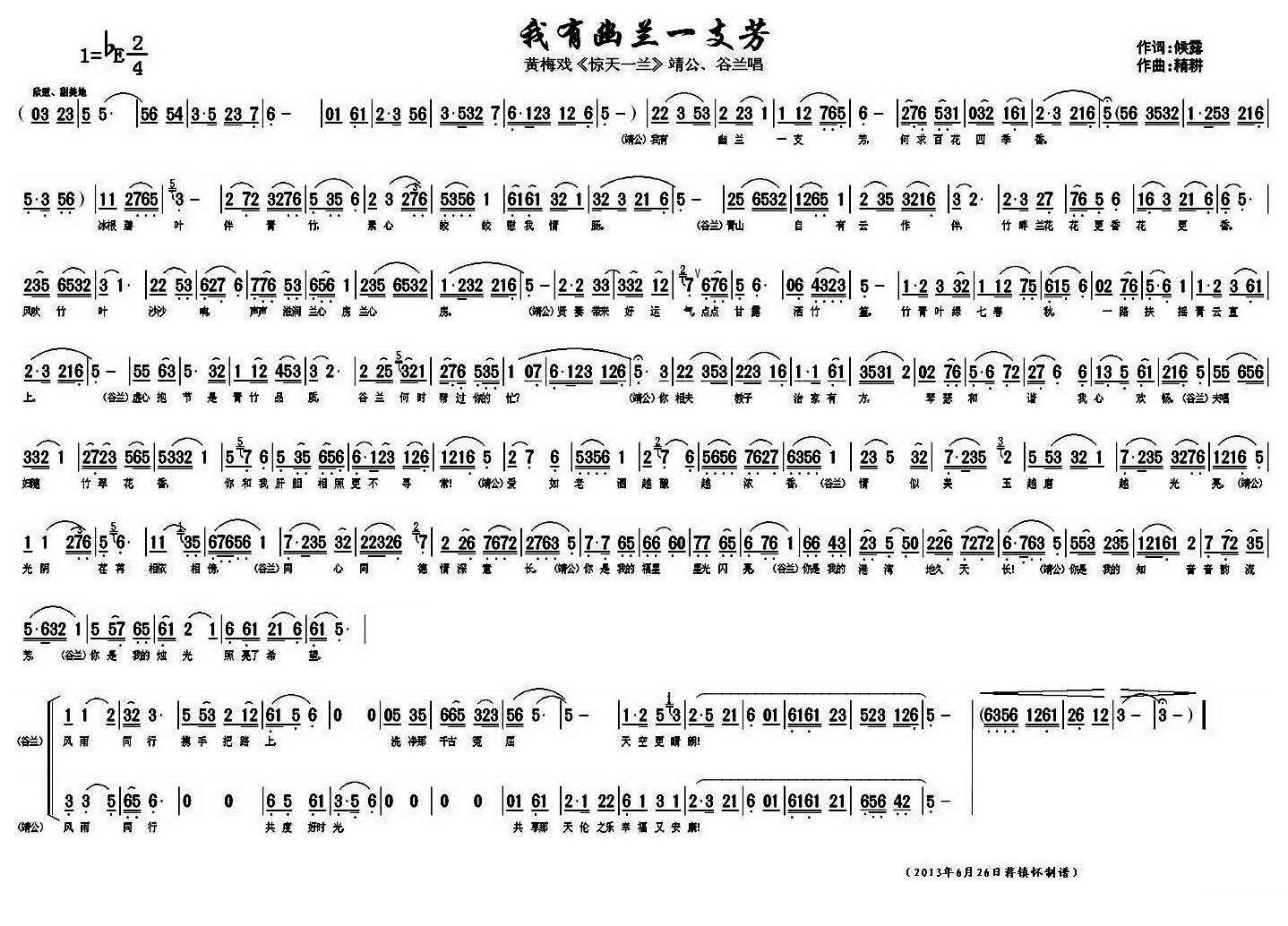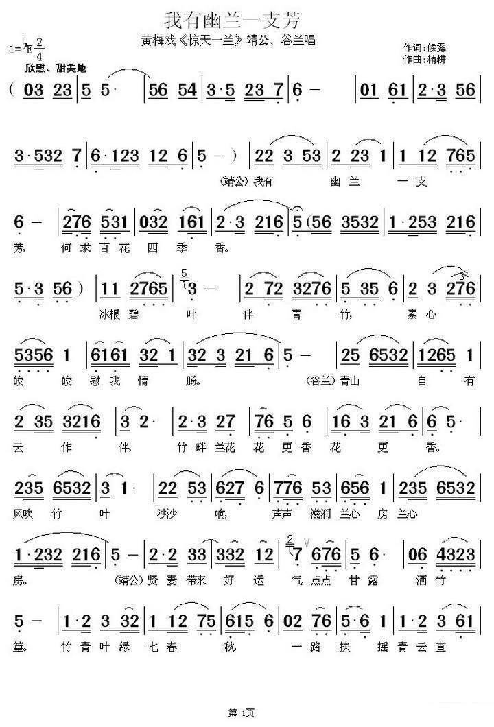 我有幽兰一支芳 《惊天一兰》靖公、谷兰唱段:我有幽兰一支芳简谱-黄梅戏曲谱 曲谱 歌谱下载
